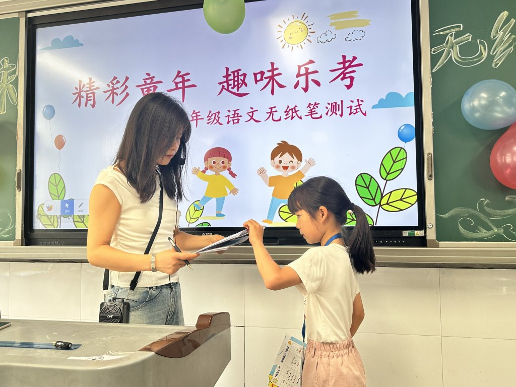 ~ “双减”政策下,小学生的期末考花样不断翻新。6月23日上午,南京市新浦实验小学教育集团定远县花园湖小学校区一、二年级在楼前广场和班级举行了趣味无“纸”境 五育促成长纸笔趣味测评活动。