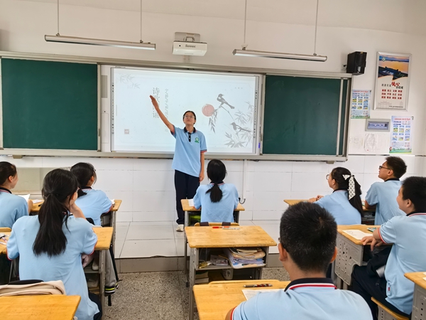 ~ 结合语文教材中的古诗词单元,班级举办“青春的诗行”朗诵会。学生自选李商隐、李白、杜牧、屈原等诗人的作品,辅以音乐、舞蹈、情景剧等形式演绎。穆书瑶同学朗诵《木兰诗》片段,激情澎湃,将活动推向高潮。
