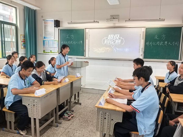 ~ “碎片化阅读利大于弊/弊大于利”“纸质书与电子书孰优孰劣”——围绕热点话题,班级开展两场读书辩论会。正方引用《如何阅读一本书》强调系统思维的重要性,反方则以“数字阅读提升效率”据理力争。辩论会后,学生自发成立“深度阅读小组”,制定每周阅读计划,并尝试用思维导图梳理书籍框架。