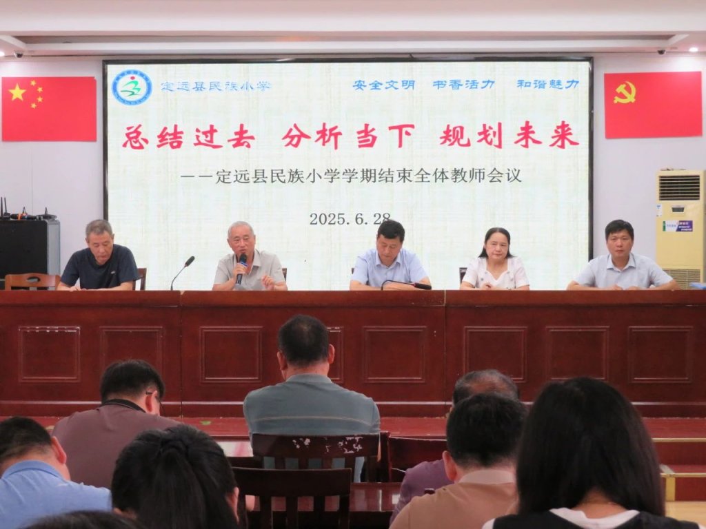 ~ 6月28日,定远县民族小学召开了2024—2025学年度第二学期结束工作会议,小学部和幼儿园全体教师参加,党支部书记、校长刘德俊主持会议。