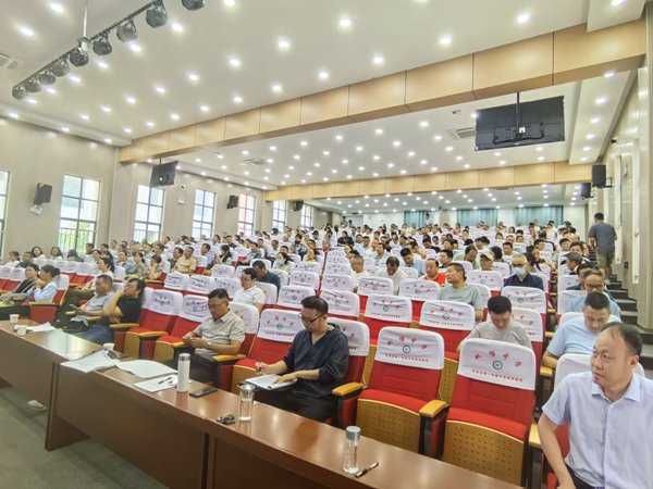 ~ 为提升全县初中数学教师的教学水平和专业素养,7月15日,定远县初中数学教师全员培训集中学习在该县双塘中学报告厅成功举行。此次培训由县教育局师训中心主办、县教师进修学校承办,面向全县所有初中数学教师,旨在帮助教师们深入理解中考数学命题趋势,掌握培养学生数学学科核心素养的有效策略。全县300余名初中数学教师参加,县教育局教研室教研员戚功明老师出席开班仪式并作动员讲话。