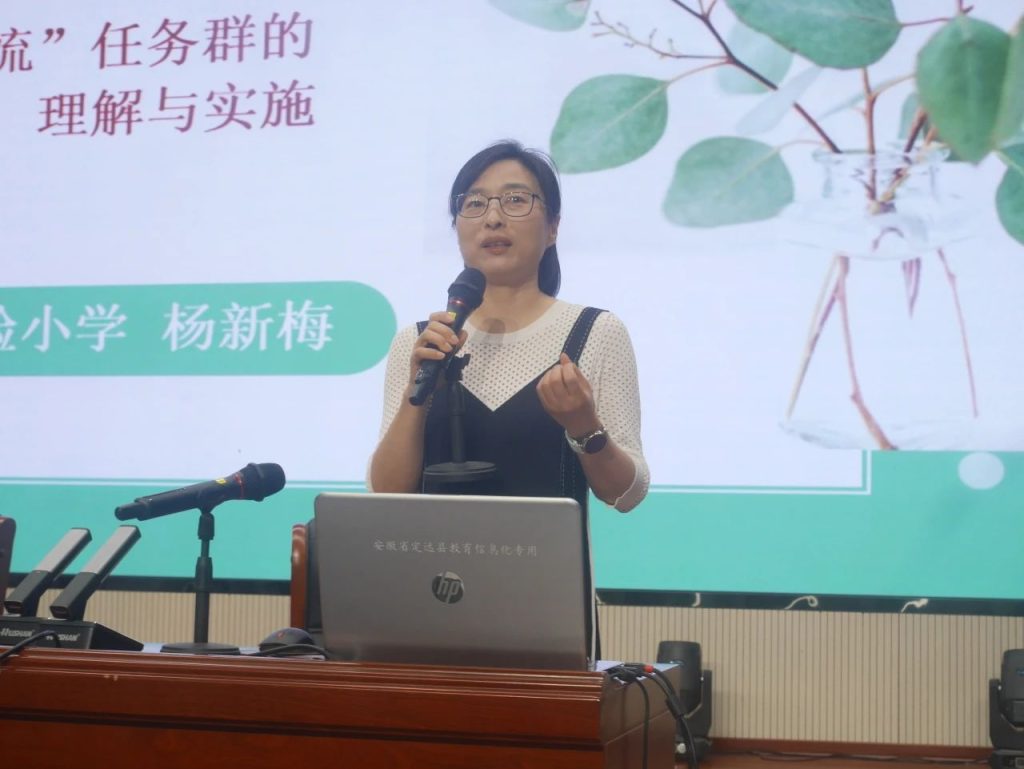 ~ 7月15日上午,滁州市中青年骨干教师、学科带头人杨新梅从新课标、新教材的性质、理念、目标和内容等方面对小学语文教学进行了剖析,通过具体实例,向老师们展示了理论与教育实践的完美结合。