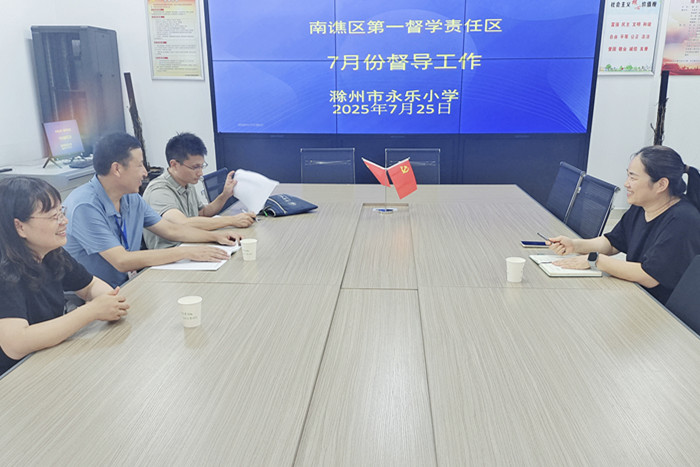 ~ 7月25日上午,南谯区第一督学责任区一行深入滁州市永乐小学,开展了7月份常规督导工作。内容围绕防溺水工作、招生工作、校务管理与制度执行情况、党建等工作开展了督导,为该校规范办学、提升质量精准把脉。