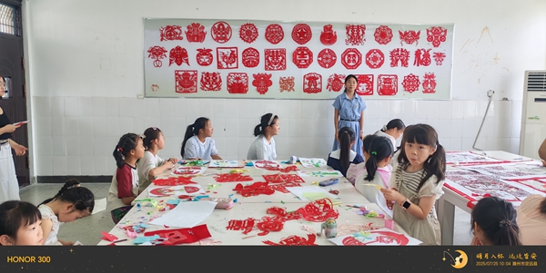 ~ 活动中心暑期公益剪纸班林芯蕊、黄雅茹表示,在张老师的指导下,不仅掌握了更多剪纸技巧,更深刻感受到中华传统文化的独特魅力。活动结束后,孩子们纷纷展示自己的作品,脸上洋溢着满满的成就感与自豪感。