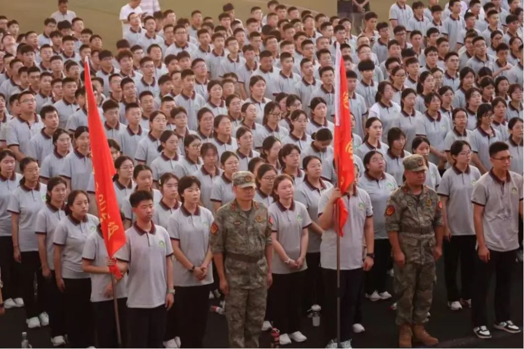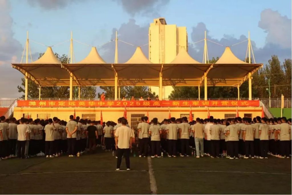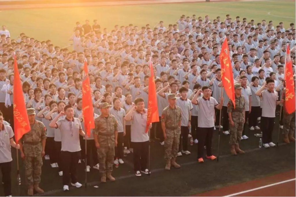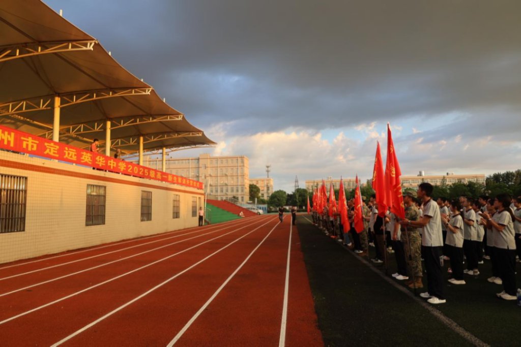 ~ 金秋送爽,军歌嘹亮。2025年8月15日下午,滁州市定远英华中学高中部2025级新生军训开营仪式在田径场隆重举行。朝气蓬勃的高一新生,怀揣着梦想与憧憬,身着校服,齐聚一堂,正式开启了高中生涯的第一课——军训。学校领导、承训教官及高一年级全体师生共同见证了这一庄严时刻。