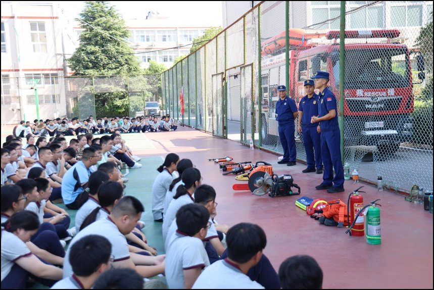 ~ 此次消防宣传进校园活动,不仅丰富了军训内容,更通过“教育一个学生、带动一个家庭、影响整个社会”的方式,让安全意识的种子在同学们心中生根发芽。我校将继续深化与消防部门的合作,定期开展安全教育活动,为构建平安校园、和谐社会贡献力量。