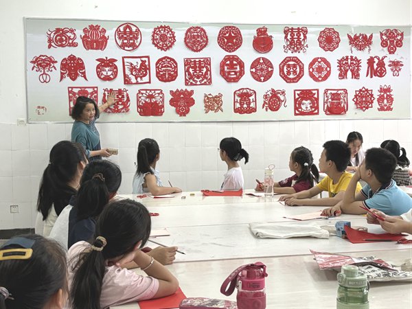 ~ 从7月2日至8月20日,活动中心面向全县小学生,分两期开设了乒乓球、播音主持、硬笔书法、非遗剪纸、少儿绘画及科技创新六大特色班,共计264节免费体验课程,累计招收学员240余名,构建起覆盖艺术、体育、科技、文化的多元成长平台。