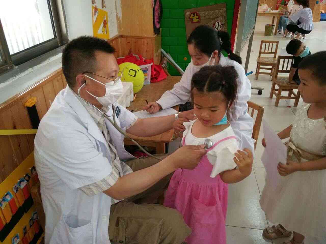 体检现场,医生重点对每位儿童的身高、体重、视力、五官、内科、血常规等进行全面检查,特别是对儿童手、足和口腔做了详细体检,便于及早发现手足口病。并为每位小朋友建立儿童健康检查记录表,对检查中出现的问题,如小儿贫血、鸡胸、小儿营养不良等问题,提出指导性建议。