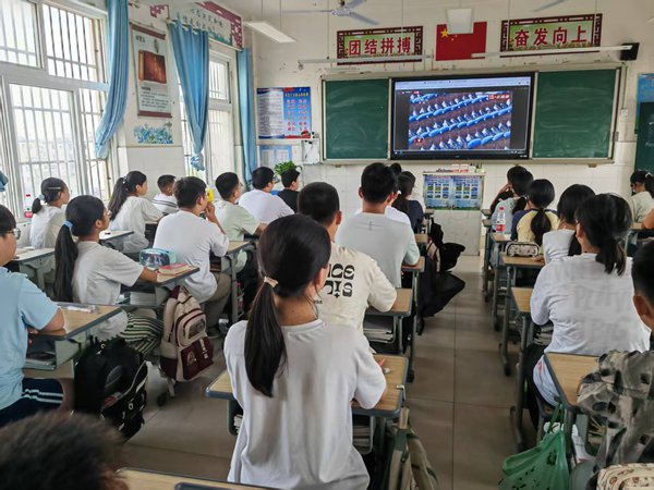 ~ 学校将报告厅设为主会场,各班级教室作为分会场。全体师生齐聚一堂,怀着崇敬的心情,共同见证这一庄严而神圣的时刻。