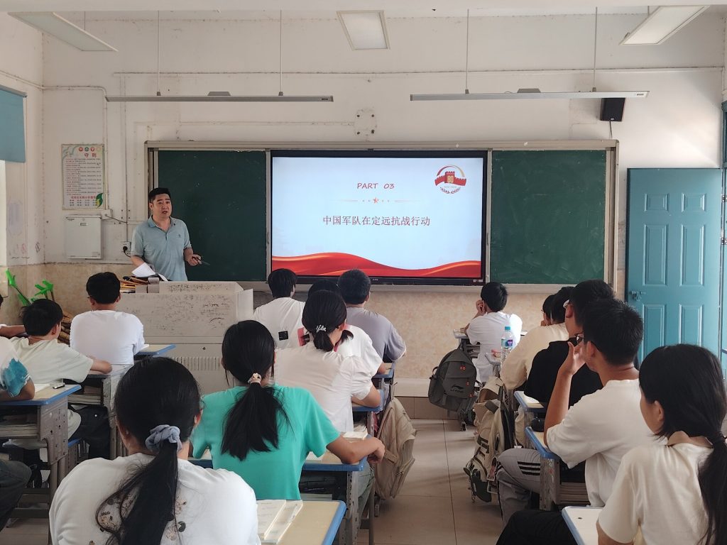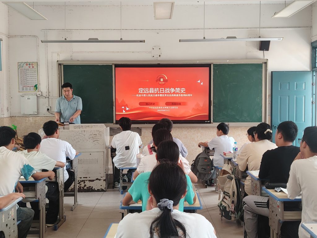 ~ 为纪念中国人民抗日战争暨世界反法西斯战争胜利80周年,9月5日,定远县党史和地方志研究室卓亮一行来到三和学校开展“党史进校园”宣讲活动。