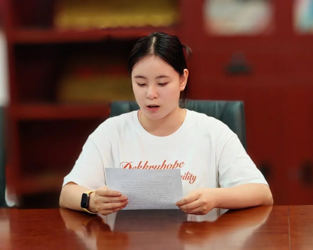 ~ 杨丽婷老师作为徒弟代表承诺,会多听课,积极参与各种教学活动;多反思,在反思中不断进步;多积累,在积累的基础上不断发展。