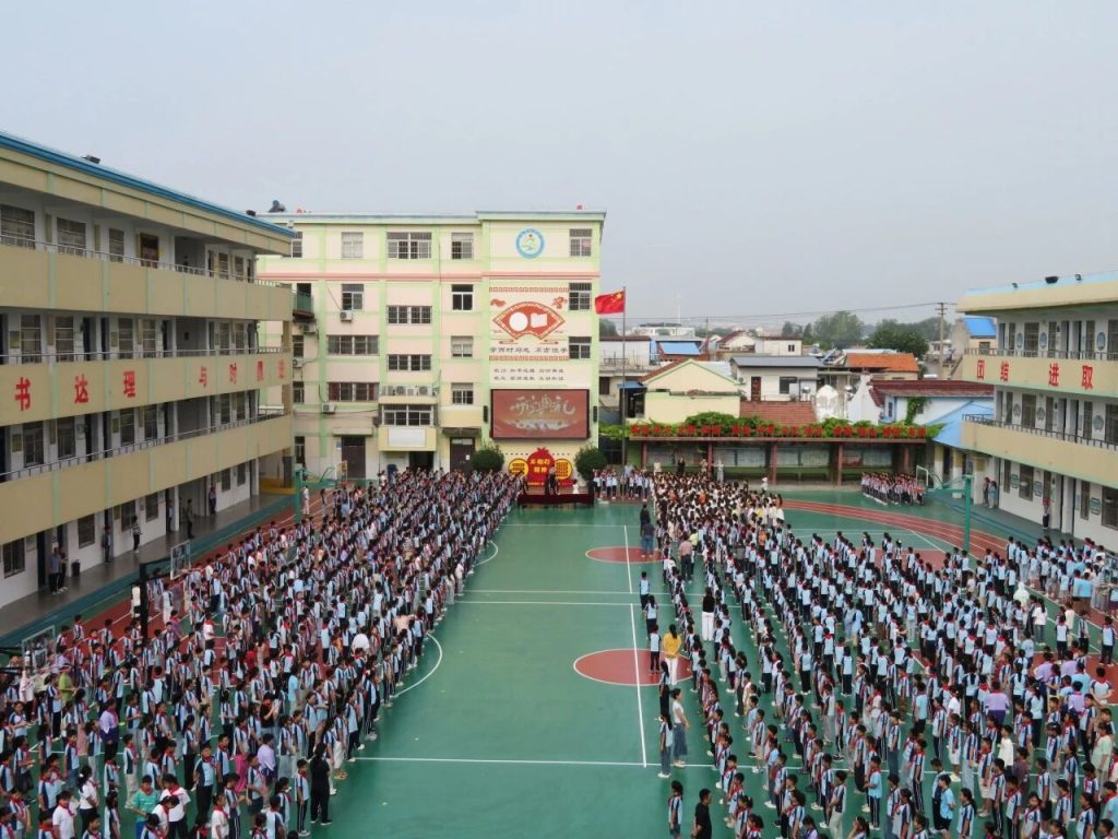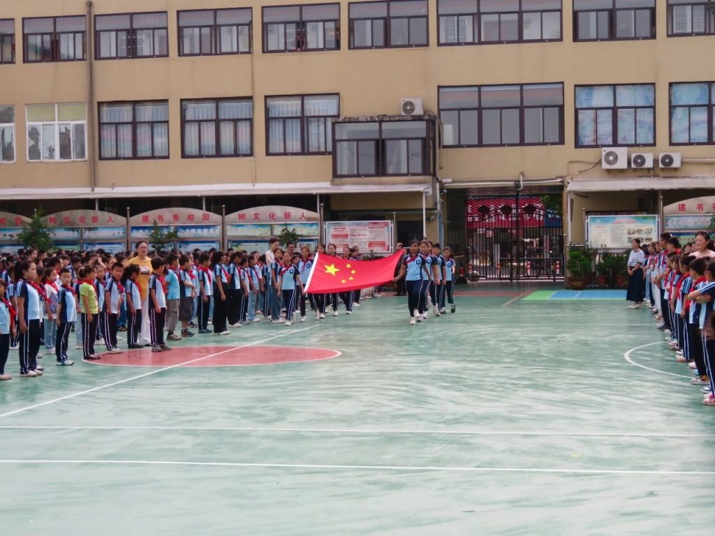 ~ 开学典礼在庄严的升旗仪式中正式开始,鲜艳的五星红旗缓缓升起,全体师生庄严肃立,向国旗行注目礼,心中充满了对祖国的热爱和对新学期的憧憬。