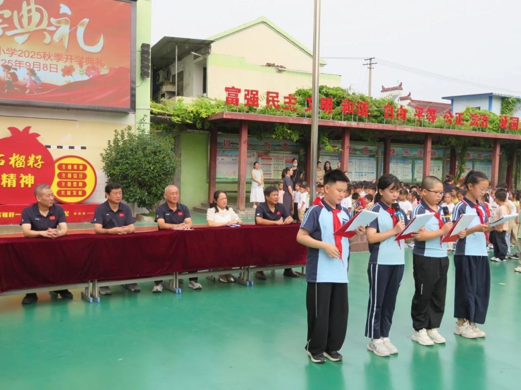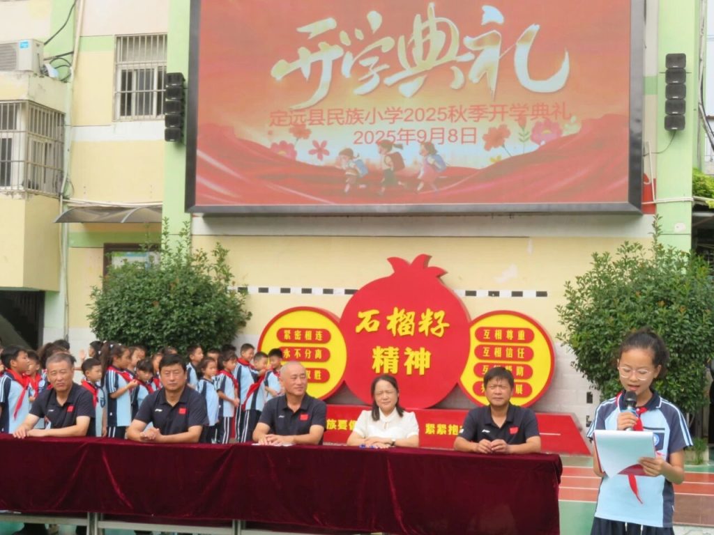 ~ 志气腾云苍穹远,榴园硕果飘香时。伴随着崭新的希望与期待,定远县民族小学于9月8日上午在校园操场隆重举行了2025年秋季学期开学典礼。全体师生精神饱满,齐聚一堂,共同开启了新学期的美好篇章。开学典礼由大队辅导员高迎娣主持。