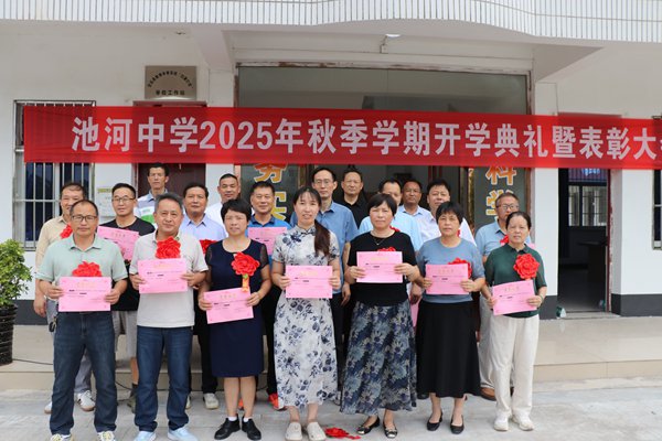 ~ 9月8日上午,在第41个教师节来临之际,为表彰先进,树立典型,发挥榜样的引领作用,定远县池河中学在青春广场前举行了2024-2025年度优秀教师表彰大会,对上一学年来在教育教学、班级管理、寄宿制管理、课后服务中表现优秀的22名优秀教师进行表彰。校党支部书记、校长欧健海出席会议并为发表重要讲话,大会由副校长杨正周主持,定远县优秀企业家,安徽省永存米业有限公司总经理陈彪出席大会并为获奖教师颁发了获奖证书和奖金。
