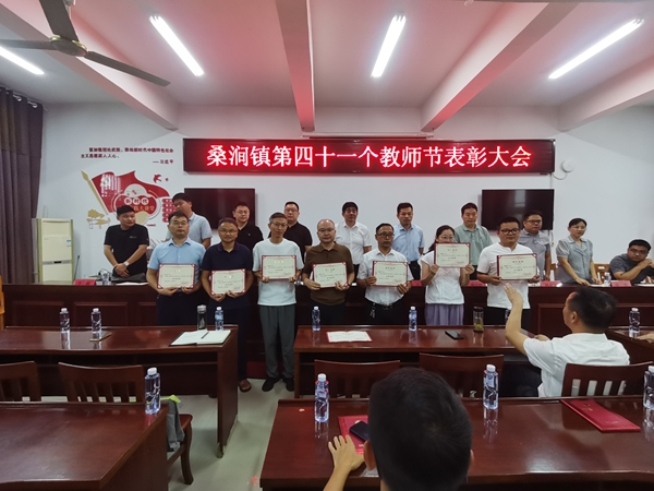 ~ 金秋九月,硕果盈枝。9月9日上午,为庆祝第41个教师节,定远县桑涧镇政府召开教师节总结表彰大会。弘扬尊师重教风尚,激励全镇教育工作者砥砺前行。镇党政班子成员、各校(园)代表、站所负责人及村(社区)党支部书记等近百余人齐聚一堂,共同向全镇教师致以节日的问候与崇高的敬意。