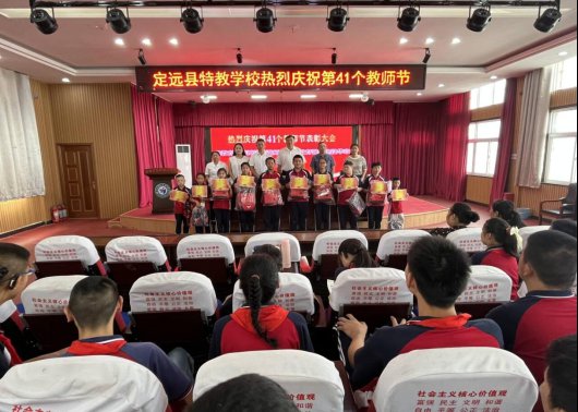 ~ 金秋九月,丹桂飘香;桃李芬芳,感念师恩。2025年9月8日,在第41个教师节来临之际,定远县特教学校隆重举行“以教育家精神铸魂强师 谱写教育强国建设华章”为主题的教师节表彰大会。全体教职工齐聚一堂,共同回顾耕耘足迹,展望育人新程,以温暖与敬意致敬教育路上的“筑梦人”。