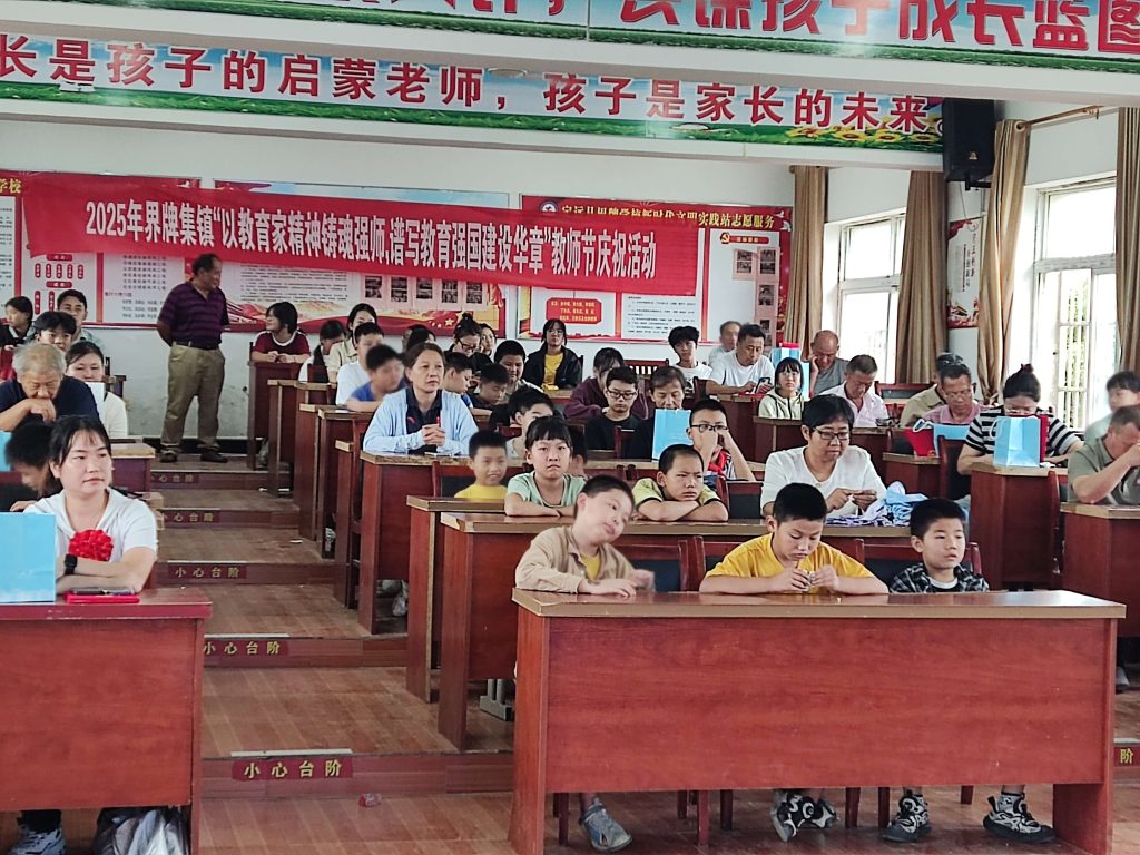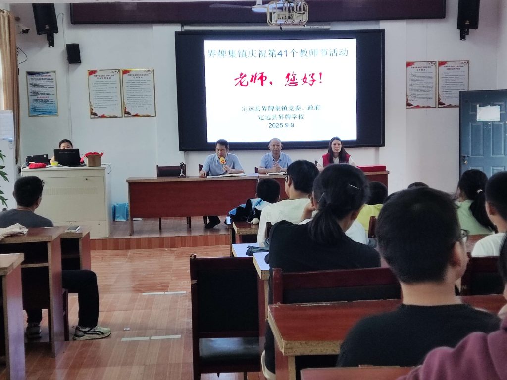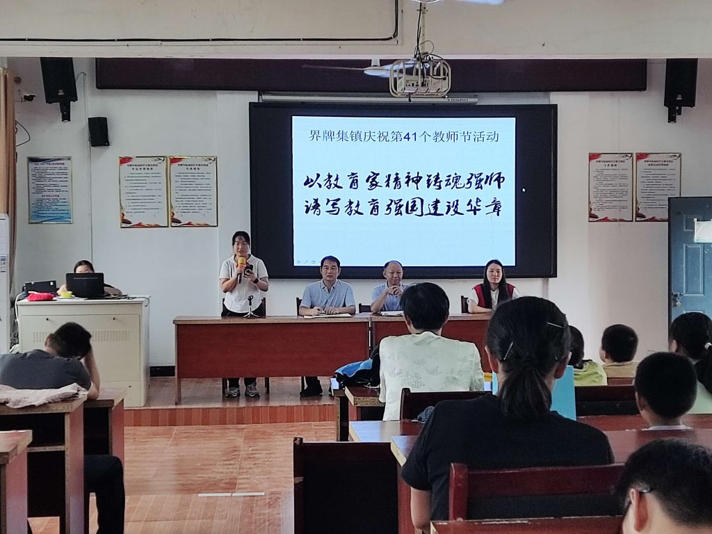 ~ 2025年9月9日,定远县界牌学校校园内洋溢着尊师重教的浓厚氛围,学校隆重举行以“以教育家精神铸魂强师,谱写教育强国建设华章”为主题的第41个教师节庆祝活动。活动旨在弘扬人民教师高尚师德,营造全社会尊师重教良好风尚,激励广大教师以教育家为榜样,潜心育人,为建设教育强国贡献力量。