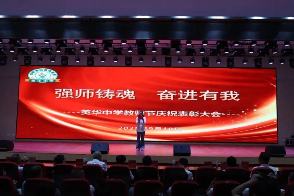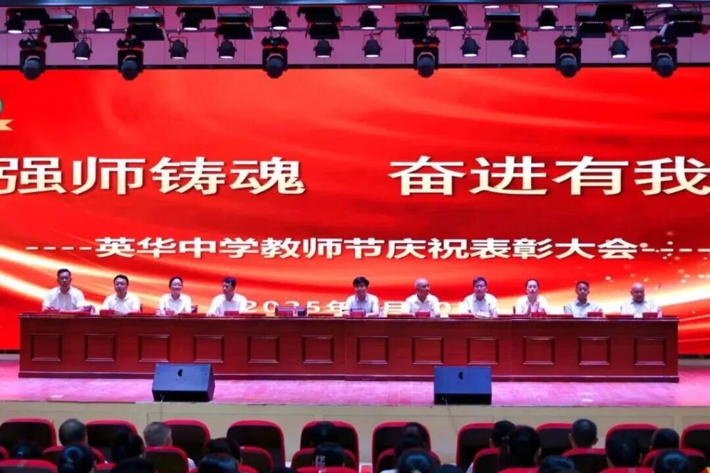 ~ 金秋九月,礼赞师者。英华中学庆祝第四十一个教师节表彰大会圆满落幕,每一份荣誉都闪耀着教育者的坚守与担当,每一次掌声都承载着对匠心育人的敬意。感谢全体教职工以爱为犁、以智为种,在校园沃土上耕耘希望。新学年的号角已吹响,愿每一位英华教育人怀揣 “三师” 初心,践行 “三观” 使命,以光热照亮学生成长路,以实干书写教育新答卷,在教育强国的征程上,续写英华更璀璨的篇章。
