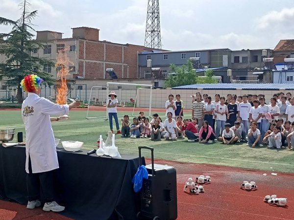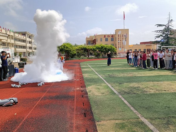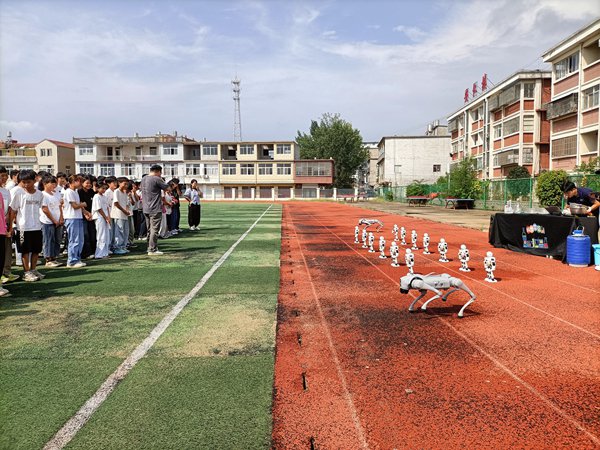~ 接下来的各种科普体验器械深深吸引着同学们,憨态可掬的小机器人随着音乐舞动,令同学们大开眼界。大家围着机器人,争先恐后地观看。随后,机械狗出现在同学们的视野中,给同学们展示了蹲下、转身、拜年、翻转等多维度肢体动作,引发阵阵喝彩;更有趣的是,机械狗还与同学们在操场上互动,场面热闹非凡。同学们在亲身体验、亲切互动中体验了科学带来的神奇与魅力,现场充满欢声笑语,探讨声、惊叹声此起彼伏。(供稿: 王爱侠 审核:葛明珠 审签:张中保)