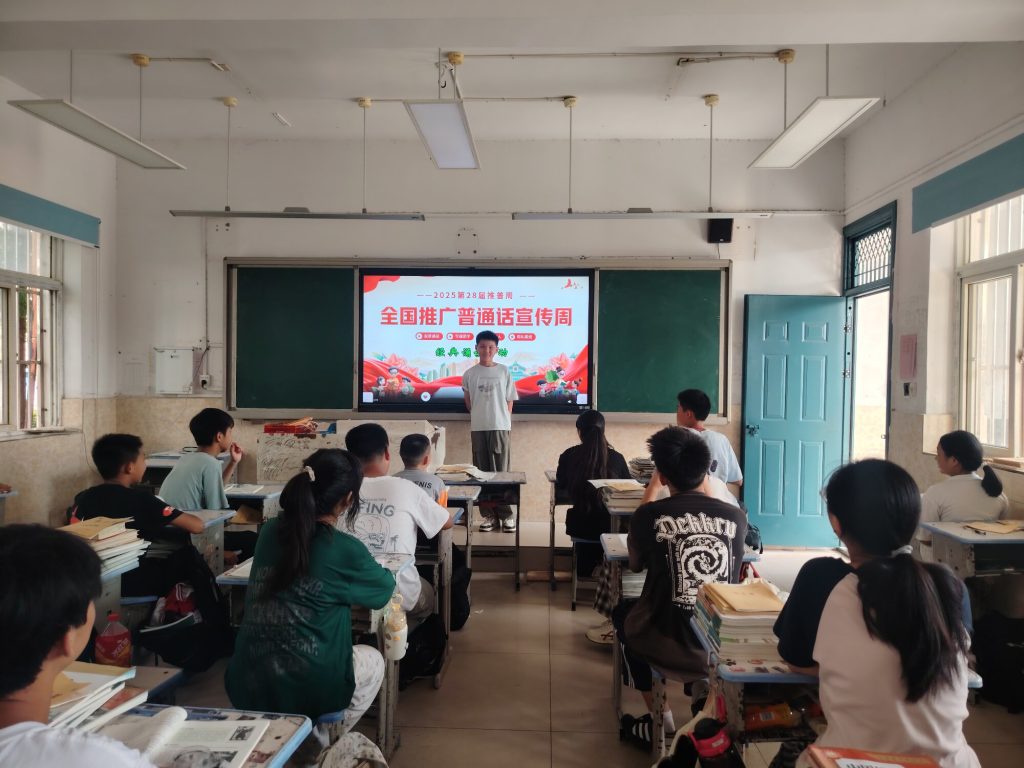 ~ 9月15日至21日是第28届全国推广普通话宣传周。为加强推广普通话宣传,推进学校语言文字工作规范化发展,提升学校师生普通话水平,9月15日,定远县三和学校各班纷纷组织学生开展经典诵读和推广普通话宣传周活动。