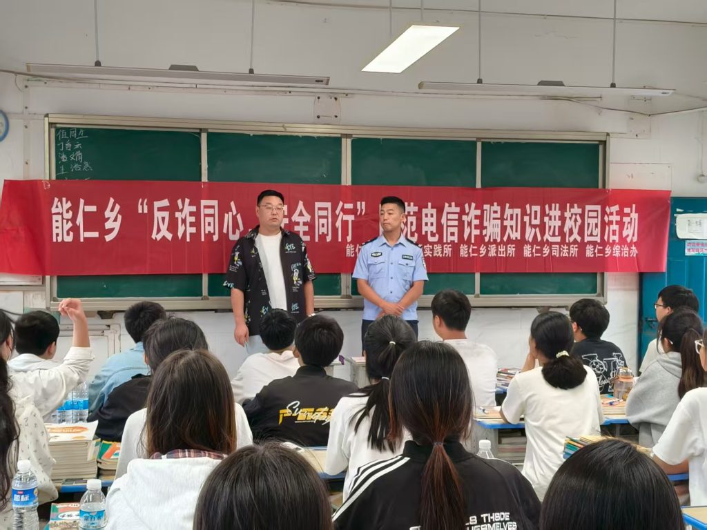 ~ “校园网络安全防护不是‘一次性课程’,而是长期任务。”能仁乡派出所副所长蒋楠、能仁乡党委委员宣传委员陈元春、能仁乡综治办主任陶晨和司法所工作人员韩聪纷纷表示,乡司法所将根据针对学生诈骗案件的新趋势,定期更新案例库,创新宣传形式;同时会建立“民警+辅导员+学生骨干”的反诈联络机制,及时推送预警信息,快速处置涉校涉生诈骗线索。“我们要和学校一起,结合普法宣传,构建多层次、全覆盖的校园反诈防护网,切实提升师生的防护能力,助力平安校园建设。”