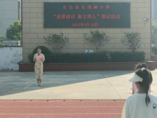 ~ 2025年9月15日至21日是第28届全国推广普通话宣传周。为贯彻落实国家语言文字工作的方针政策,定远县花园湖小学围绕活动主题,结合学校实际情况,精心组织并成功开展了一系列丰富多彩的推普活动。
