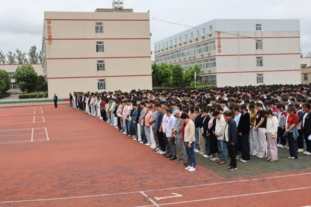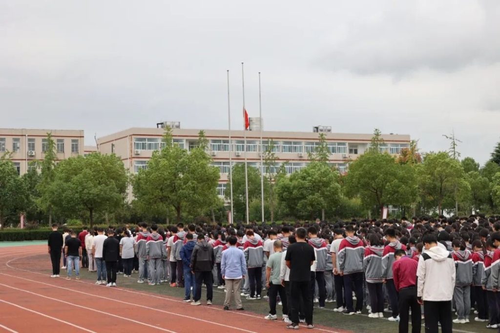 ~ 在这个庄重的时刻,滁州市定远英华中学降半国旗以致哀,全体师生面向国旗,向在“九一八”事变中的遇难者行默哀礼。