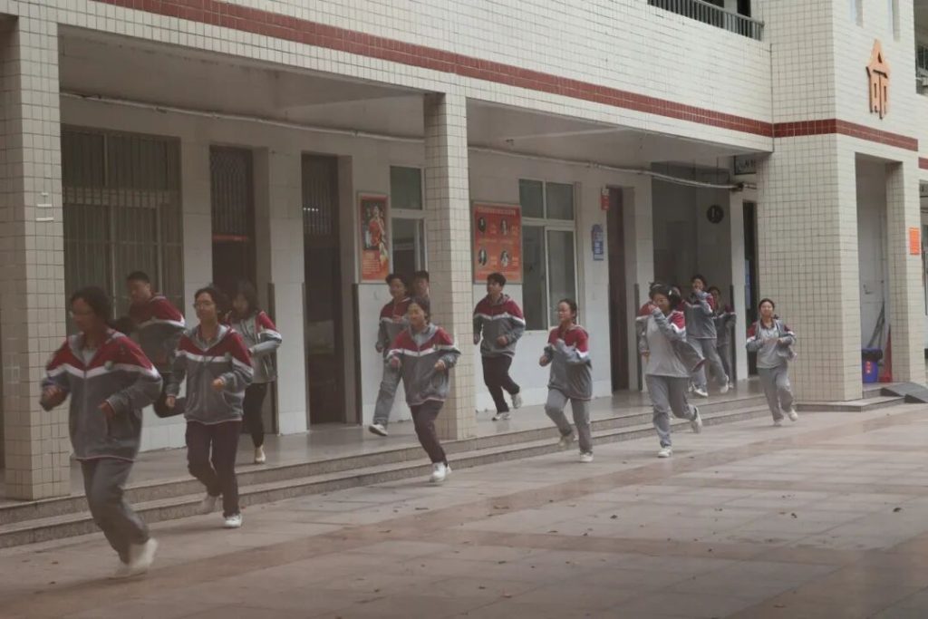 ~ 上午9时30分,警报声响起。第一次警报声响起,各演练小组人员按照预案迅速到达指定位置,第二次警报声响起,各班学生在当堂老师和班主任的指引下迅速有序撤离教学楼,各区域引导老师严守岗位,确保通道顺畅。仅用5分26秒,全体师生统一到校田径场集合。各年级负责人清点人数并向总指挥报告。整个演练过程快而不乱,有条不紊,达到了预期效果。