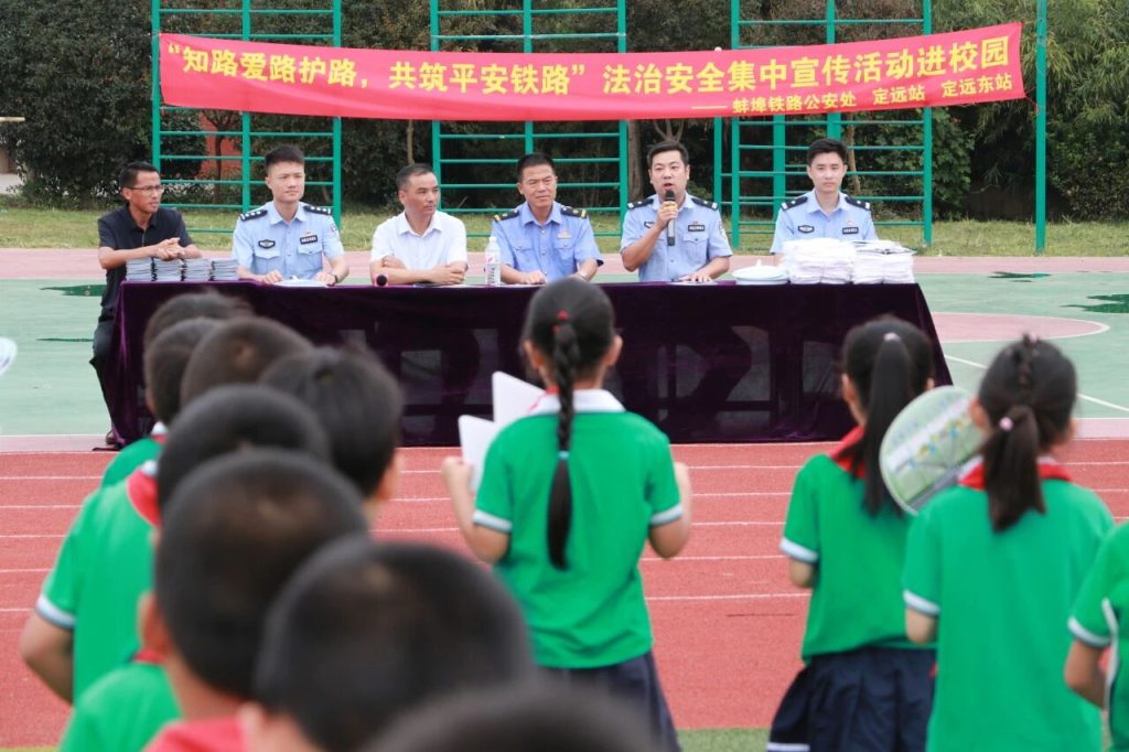 ~ 9月17日上午,蚌埠铁路公安处、定远东站走进桑涧小学,在学校操场开展“知路爱路护路,共筑平安铁路”法治安全集中宣传活动,进一步提升学生铁路安全意识与自我保护能力。