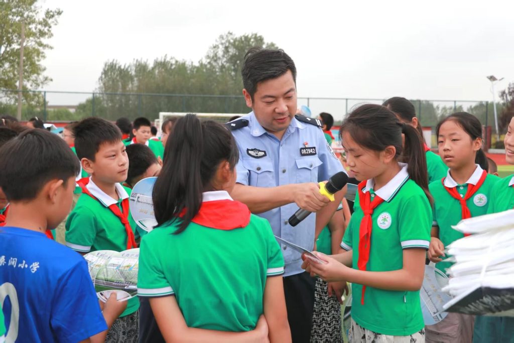~ 活动最后,民警为学生们分发了印有安全宣传标语的手摇扇子和文化T恤衫,将安全理念以实用物品为载体传递给每一位学生。