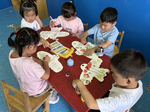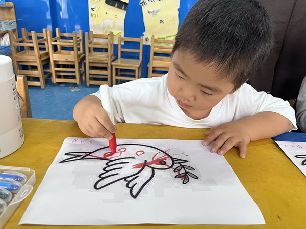~ 与此同时,幼儿园的孩子们则用稚嫩却真诚的笔触表达情感。在老师的指导下,小朋友们开展了“我心中的祖国”主题绘画活动。一幅幅充满童真的画作,画下了飘扬的国旗、壮丽的天安门和平飞的和平鸽,充满了对祖国最纯粹的爱与祝福。