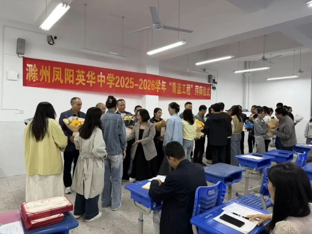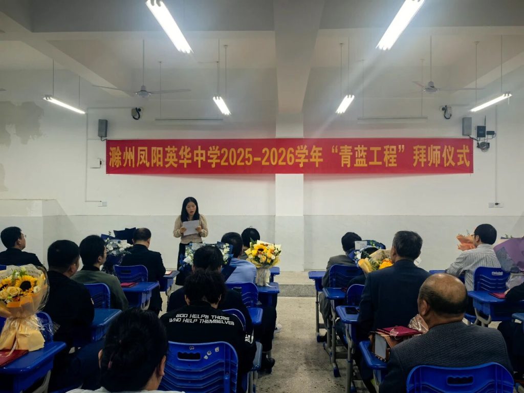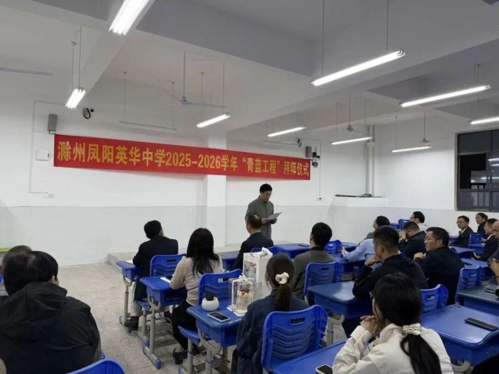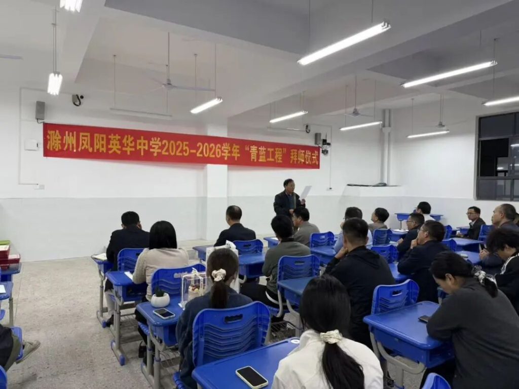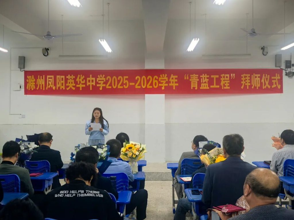 ~ 莫道秋风起,最美是青蓝。为进一步加强教师队伍建设,充分发挥骨干教师的示范引领作用,促进青年教师快速成长,全面提升教育教学水平,2025年9月19日,滁州凤阳英华中学举行青蓝工程拜师仪式,为新老教师搭建起智慧传承、互学共进的桥梁。本次仪式由教研室曹春主任主持。