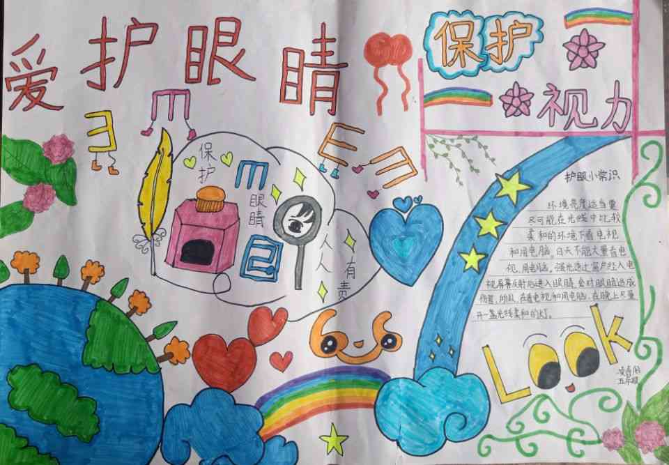 ~ 利用课间时间,加强爱眼护眼知识宣传。利用校园广播进行宣传,在校园内打造爱眼护眼的浓厚氛围。同时,要求各班主任利用主题班会教育学生珍爱眼睛,坚持做好眼保健操。并布置学生收看儿童青少年近视防与治专家咨询会直播,宣传儿童青少年近视防控知识。还组织学生做以“爱眼护眼”为主题的手抄报等。