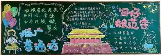 ~ 核心活动:开展字画比赛、经典诵读、常用字比赛、“小手拉大手”家校共推普、校园用字净化等五项重点活动。其中经典诵读覆盖三个年级,并举办校级决赛;各班均完成推普主题黑板报。