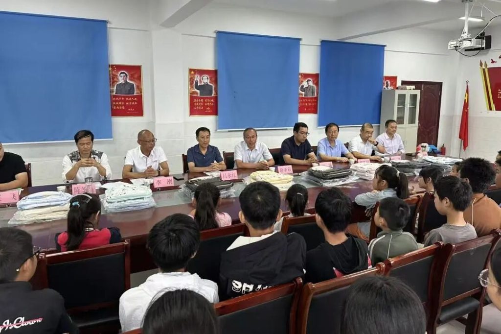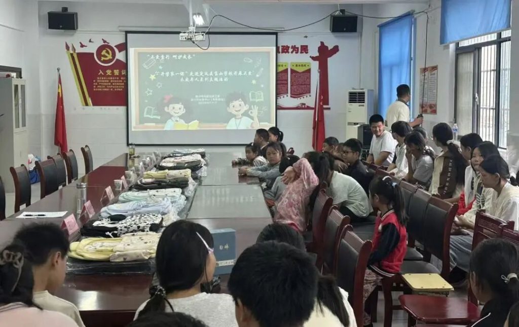 ~ 在充满暖意的文具礼包发放仪式上,50个崭新书包逐一送到学生手中,现场还设置了10个水杯作为有奖问答礼品,让同学们在期待中开启后续学习环节。发放结束后,全体领导与师生共同合影,定格下这场温馨的成长瞬间。