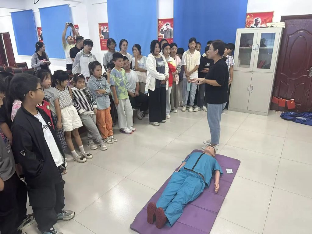 ~ 宣讲环节是本次“开学第一课”的核心内容。志愿者老师以红色故事和家国案例为切入点,开展爱国主题教育,引导同学们厚植家国情怀;工作人员通过PPT直观解读《未成年人保护法》《未成年人网络保护条例》,同步发放宣传册,帮助学生明晰自身权益、辨别网络风险,树立“学法用法护自身”的法治意识;专业救援队则带来“安全第一课”,手把手传授创伤处理、应急避险等急救技能,并分享心理健康疏导方法,为同学们筑牢身心健康双重防线。
