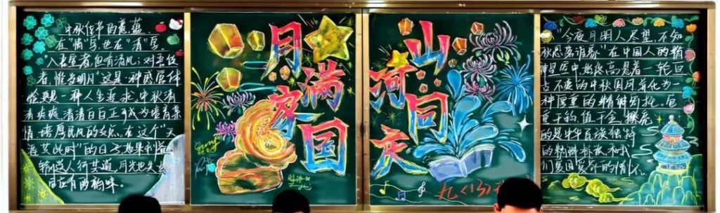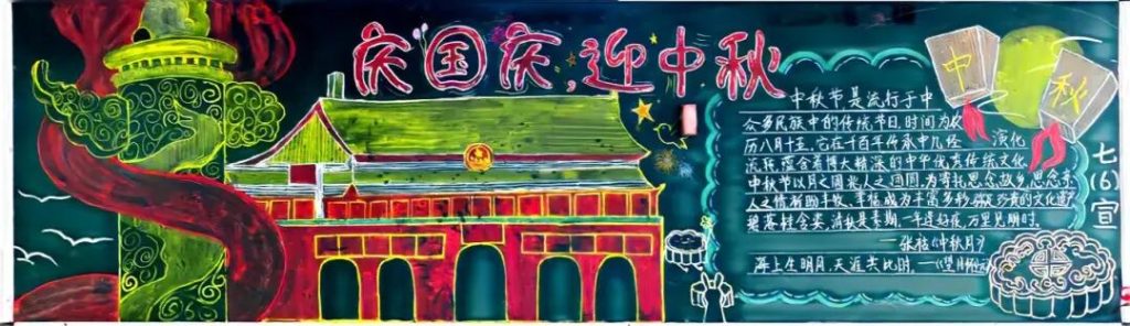 ~ 同学们精心绘制了“喜迎国庆,共谱华章”主题黑板报。版面设计色彩和谐、图文并茂,知识普及板块简洁明了、字体端正。一块块优秀的黑板报,记录下英华学子对祖国最诚挚的热爱与深情歌颂。