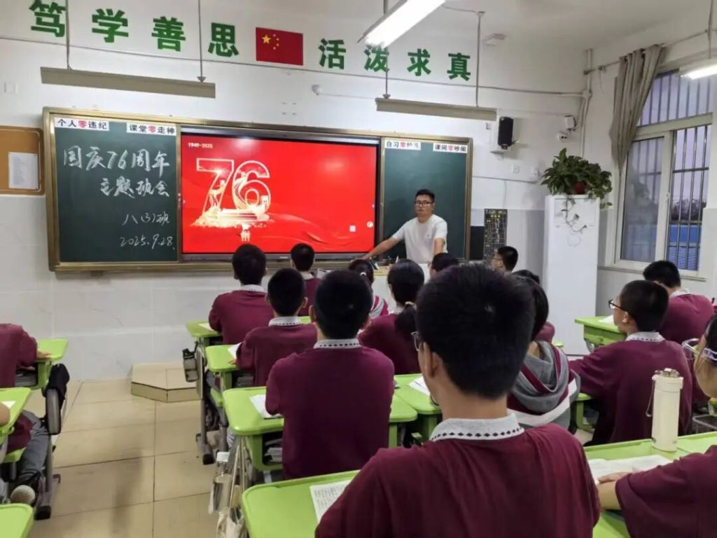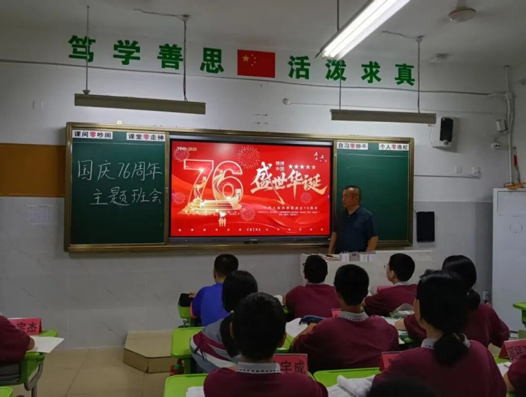 ~ 9月28日晚,各班级以教室为阵地,由班主任牵头开展《我心中的祖国》主题班会。通过观看93阅兵视频、分享爱国故事、小组讨论等形式,让同学们在潜移默化中深化对祖国的认知,将爱国情怀根植于心。