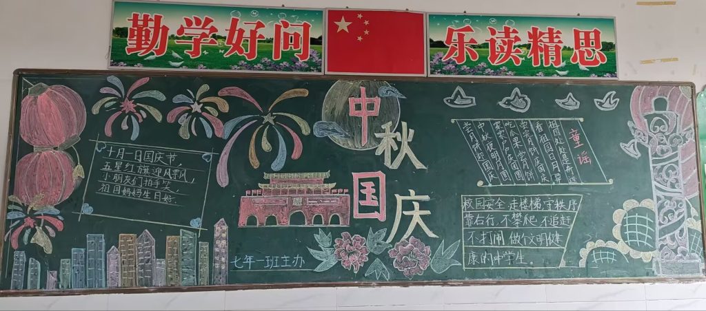 ~ 在校工会、团委和少先大队的组织下,该校师生通过篮球赛、绘画、黑板报、讲故事、主题班会等多种形式,为大家讲解国庆的由来、祖国的发展成就,以及中秋的传统习俗。低年级课堂上,孩子们跟着老师念中秋童谣、认国旗图案,用简单的语言表达对祖国的祝福;高年级课堂上,学生们围绕“家国与团圆”展开讨论,分享自己知道的爱国人物故事,有的还主动朗诵国庆主题诗歌,在交流与表达中,爱国意识与文化认同悄然提升。学校还组织学生合唱团,积极参加社区“文艺汇演”庆双节红歌比赛,学生用嘹亮的唱出了《我的大中国》征服了在场观众。