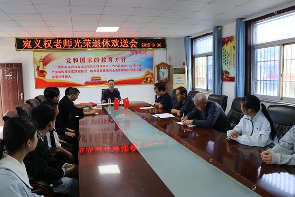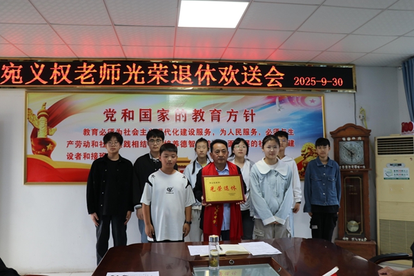 ~ 倾尽丹心育桃李,奉献韶华铸师魂。9月30日, 一场简单而温馨的退休教师欢送会在定远县池河中学小会议室举行。校党支部书记、校长欧健海,党支部副书记黄祎,副校长杨正周,教导主任刘庆虎及部分学生代表参齐聚一堂,热烈欢送宛义权老师光荣退休。