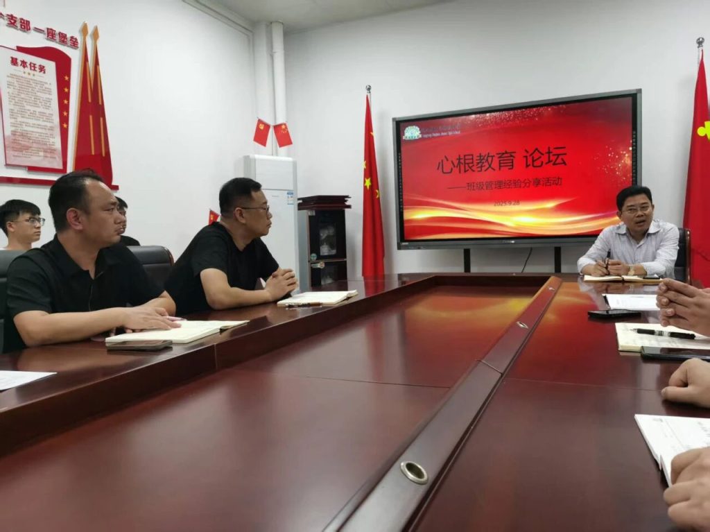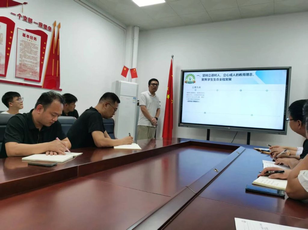 ~ 为了加强班主任队伍建设,提高班级管理效率,探索新方法,促进教师间交流与学习,9月28日晚,滁州凤阳英华中学初中部开展了以“育心养根 静待花开”为主题的班主任管理经验分享活动。本次活动由德育处牵头,凤阳英华中学执行校长崔校长、初中部校长王永以及初中部全体班主任参与本次活动。初中部德育主任张培旭主持本次活动。