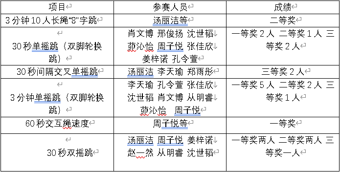 ~ 9月28日,2025“奔跑吧・少年”全国跳绳段位挑战赛(安徽安庆站)圆满落幕。芜湖市解放西路小学教育集团定远校区(职工子弟小学)参赛学子凭借扎实的功底与出色的发挥脱颖而出,斩获多项荣誉,其中10人次获一等奖、6人次获二等奖、6人次获三等奖,用跃动的身影书写了青春风采。