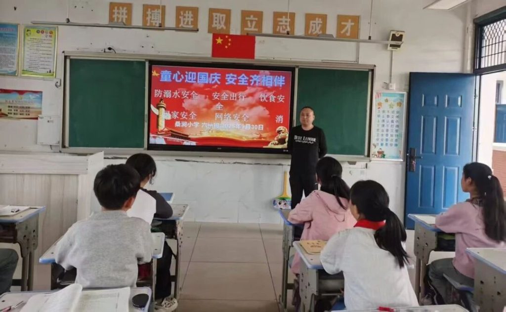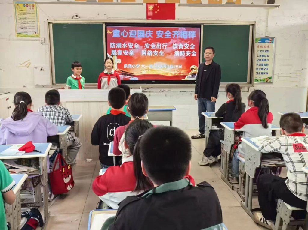 ~ 国庆中秋双节来临之际,为保障学生假期安全,定远县桑涧小学于2025年9月30日组织全校各班开展“童心迎国庆 安全齐相伴”主题班会,多维度强化学生安全意识。