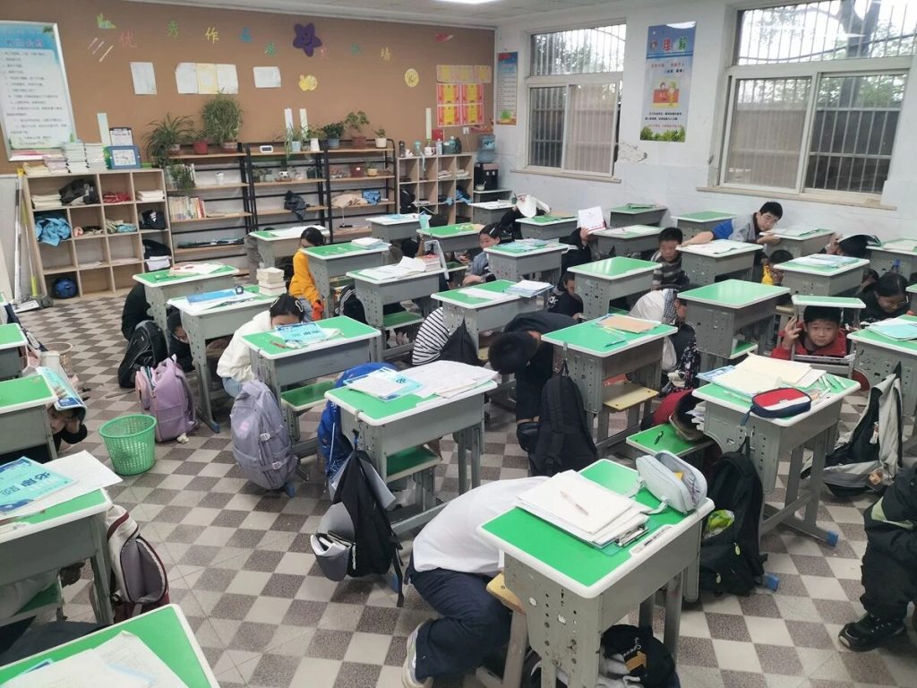 上午9时35分,急促的警报声划破校园宁静,防震应急疏散演练正式启动。全校师生按照”蹲下、掩护、抓牢”的要领,迅速完成课桌下避险、有序疏散、集中清点等全流程演练。
