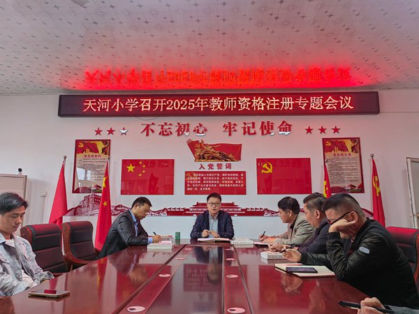 ~ 为落实定远县教体局关于2025年中小学教师资格定期注册工作要求,10月13日,天河小学开展会议,组织全校符合条件的教师有序开展教师资格注册工作。