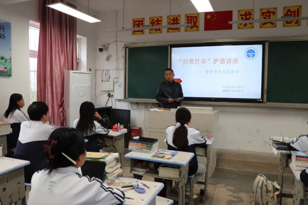 ~ 10月15日,为进一步提师生的“扫黄打非”意识,使“扫黄打非”行动深入人心,净化校园文化环境,定远县天河初中开展“扫黄打非”暨绿书签发放宣传活动。