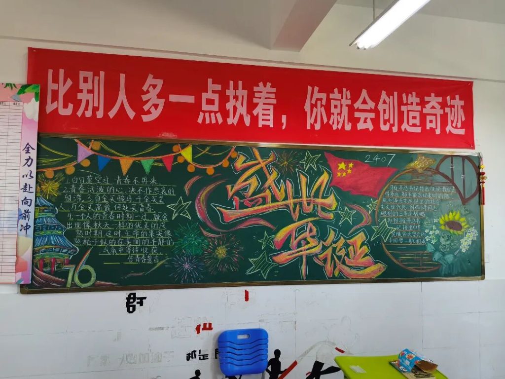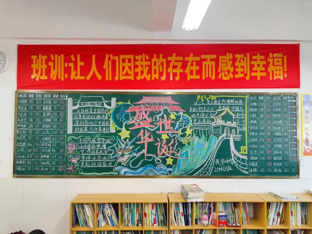 ~ 此次黑板报评比活动不仅是一场艺术创作的展示,更是一堂生动的爱国主义教育实践课。同学们在创作过程中加深了对国家发展历程的理解,增强了民族自豪感和使命感。方寸黑板间,洋溢着英华学子对祖国的无限热爱;五彩粉笔下,跃动着新时代青年的责任担当。