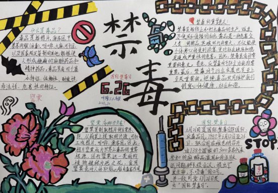 ~ 活动期间,该校利用电子屏持续滚动播放“珍爱生命,远离毒品”等宣传标语,营造出浓厚的禁毒教育氛围。各班级通过案例分析、互动讨论等形式召开主题班会,并组织学生观看禁毒知识宣传片,学生直观感受到毒品的巨大危害,进一步增强了拒毒、防毒的决心。同时,各班展出了以“禁毒”为主题的手抄报,学生通过图文展现了对禁毒的理解与支持。