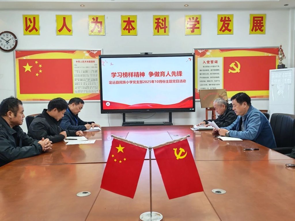 ~ 为深入推进党员教育培训工作,夯实党的创新理论武装根基,10 月20日,定远县民族小学党支部以“理论学习+榜样引领+队伍建设”的形式,组织全体党员、预备党员及入党积极分子开展10月份主题党日活动,在思想淬炼与精神传承中凝聚教育奋进力量。