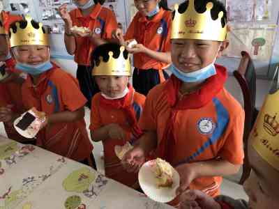 ~ 老师和同学们一起唱生日歌,孩子们许下心愿,师生一起吹灭蜡烛。孩子们吃着可口的蛋糕,每个“小寿星”的脸上洋溢着幸福的笑容。
